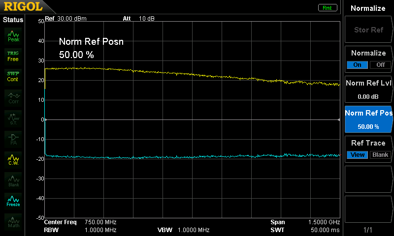 python を使って2パスで処理させてみる。前述のように 50kHz、100kHz、150kHz を計測してDC推定し、3MHz〜1.5GHz を 500 ポイント測定した結果に挿入する。実装は python/nanovna.py を変更する形で行なった。変更点