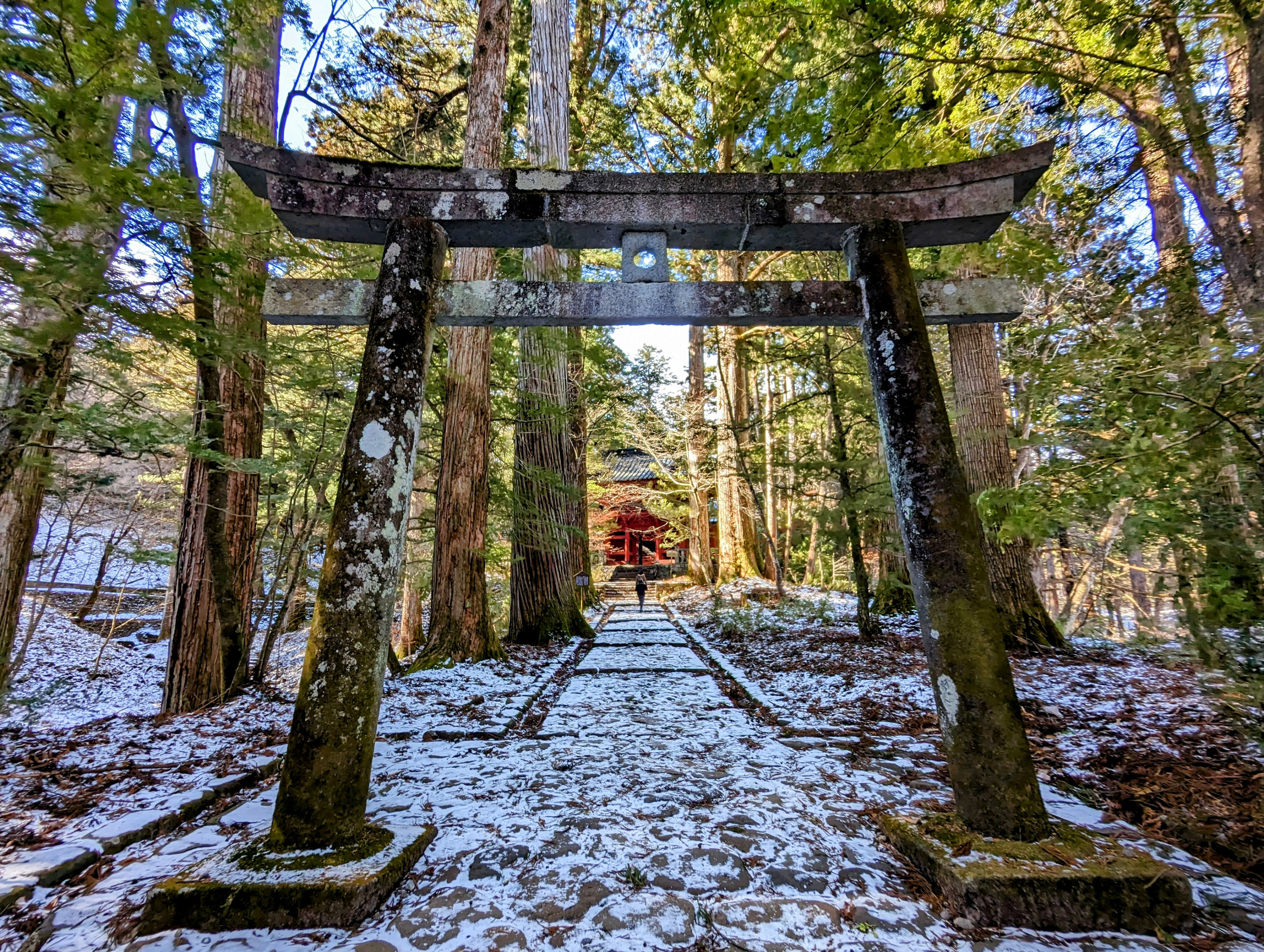 滝尾神社 今回いって一番よかった。東照宮からは20~30分程度徒歩でまぁまぁ遠い。二荒山神社側の山道から行ったが雪があってかなり怖かった。
