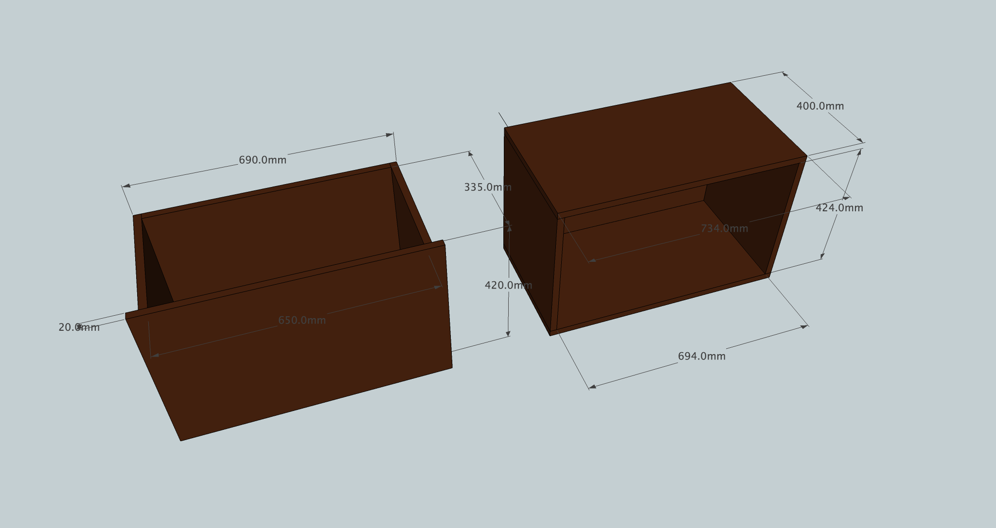 とりあえず図面を描いてみた。スライドレールをつけたいけど、その分の寸法を入れてない。スライドレールにどういう種類があって、どれを使えばいいかよくわかってない。