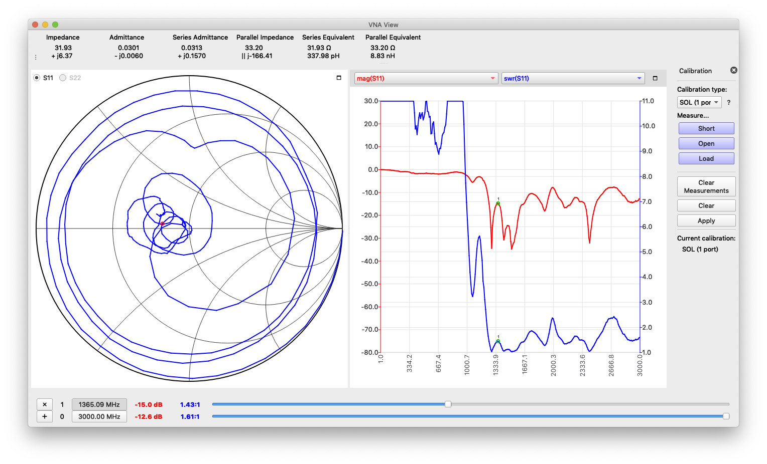 こんな感じで、確かに 1.35GHz ぐらいから SWR=2.0 以下ぐらいになっている。