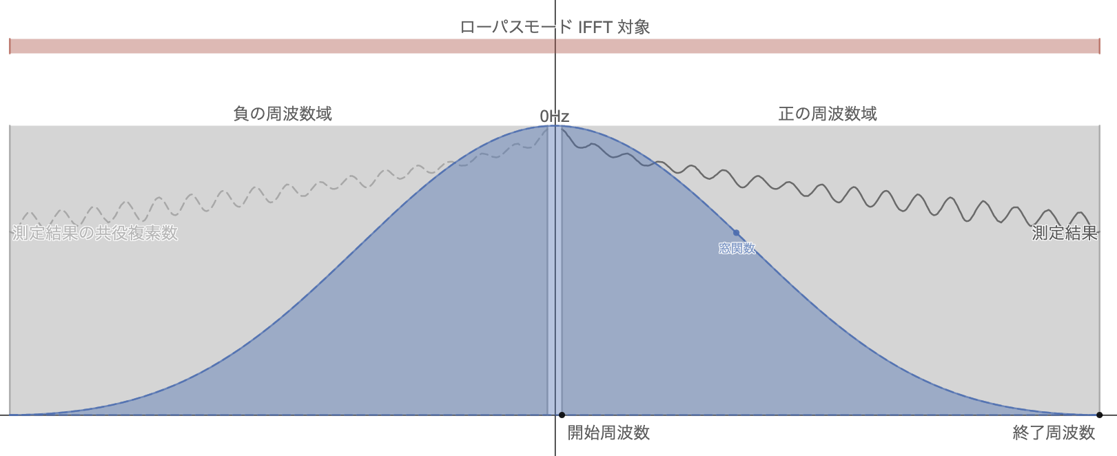 上の図はローパスモードの処理対象の概念図で、DC〜開始周波数までのデータポイントが抜けていることを説明している。