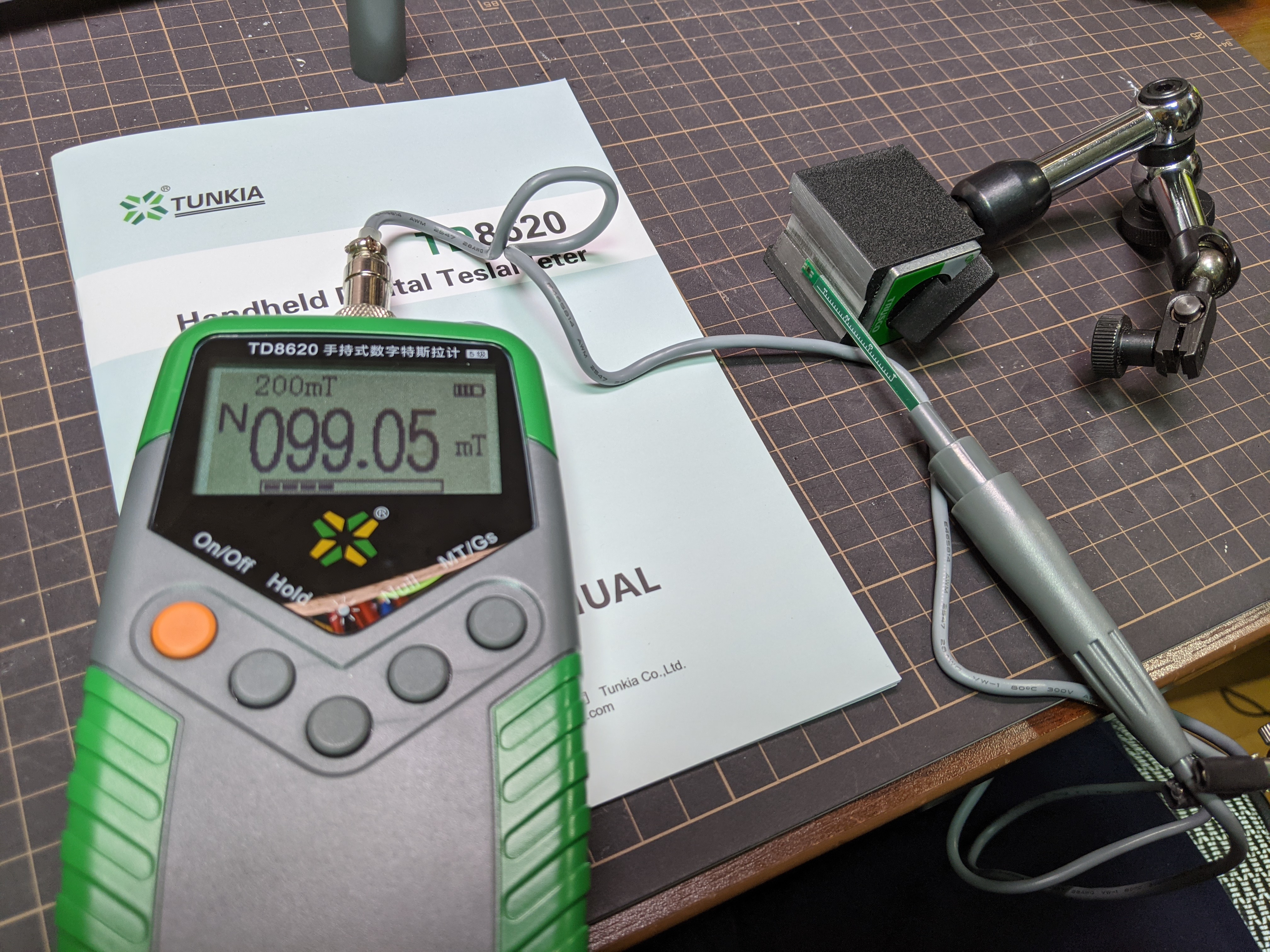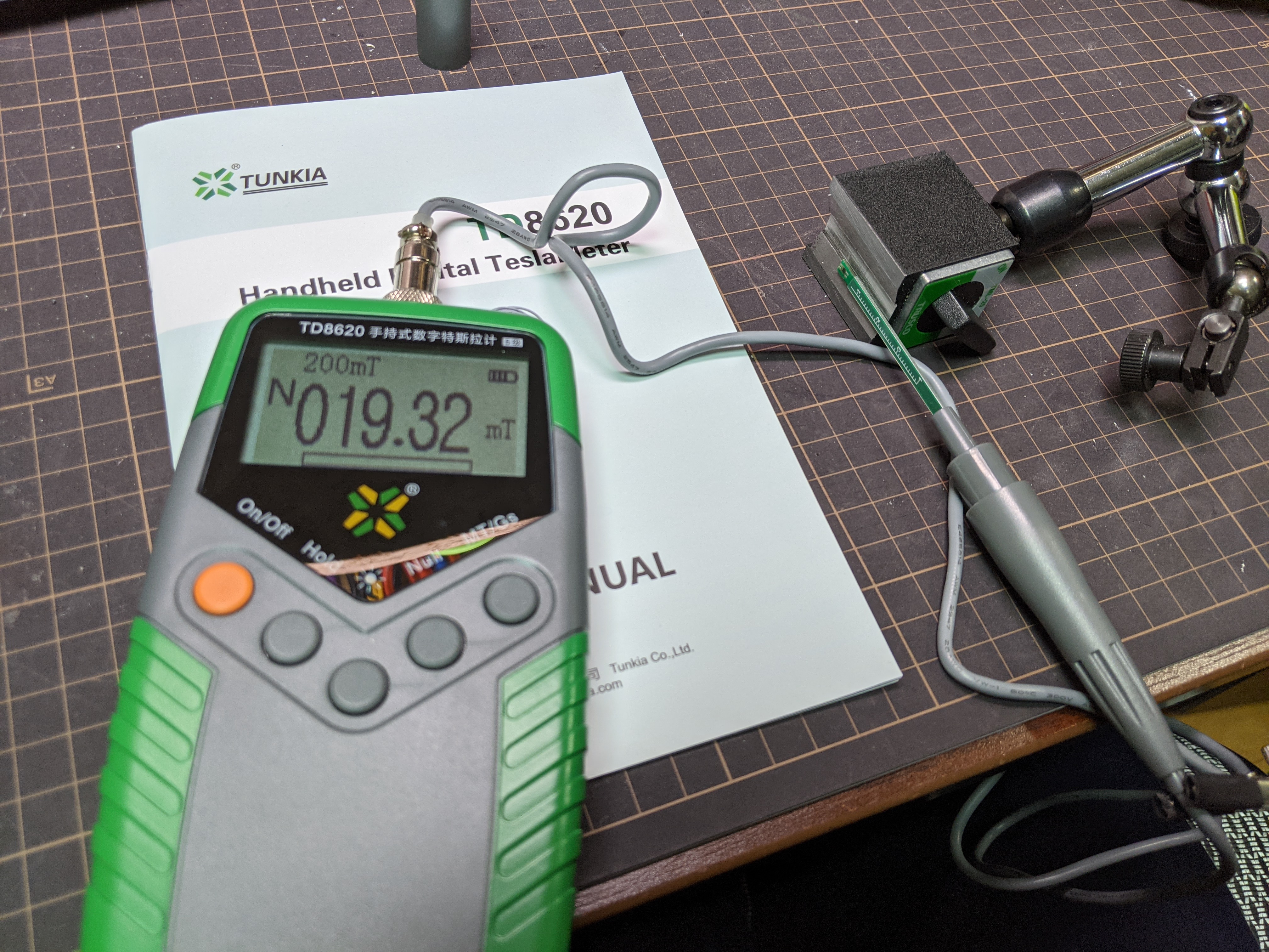 磁束密度 (テスラまたはガウス) を計測したくなったので探してみると8000円弱ぐらいで買えるものがあったので買ってみた。5級品 (5%ランク) のもので、スペックは