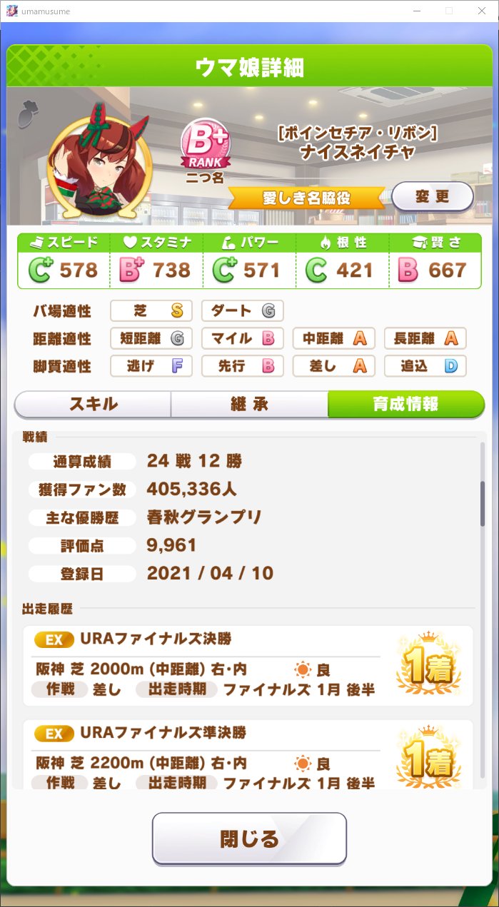 - 目標レース: シニア 6後 宝塚記念 (中距離) ここまでで1回3着をとっていないと詰み