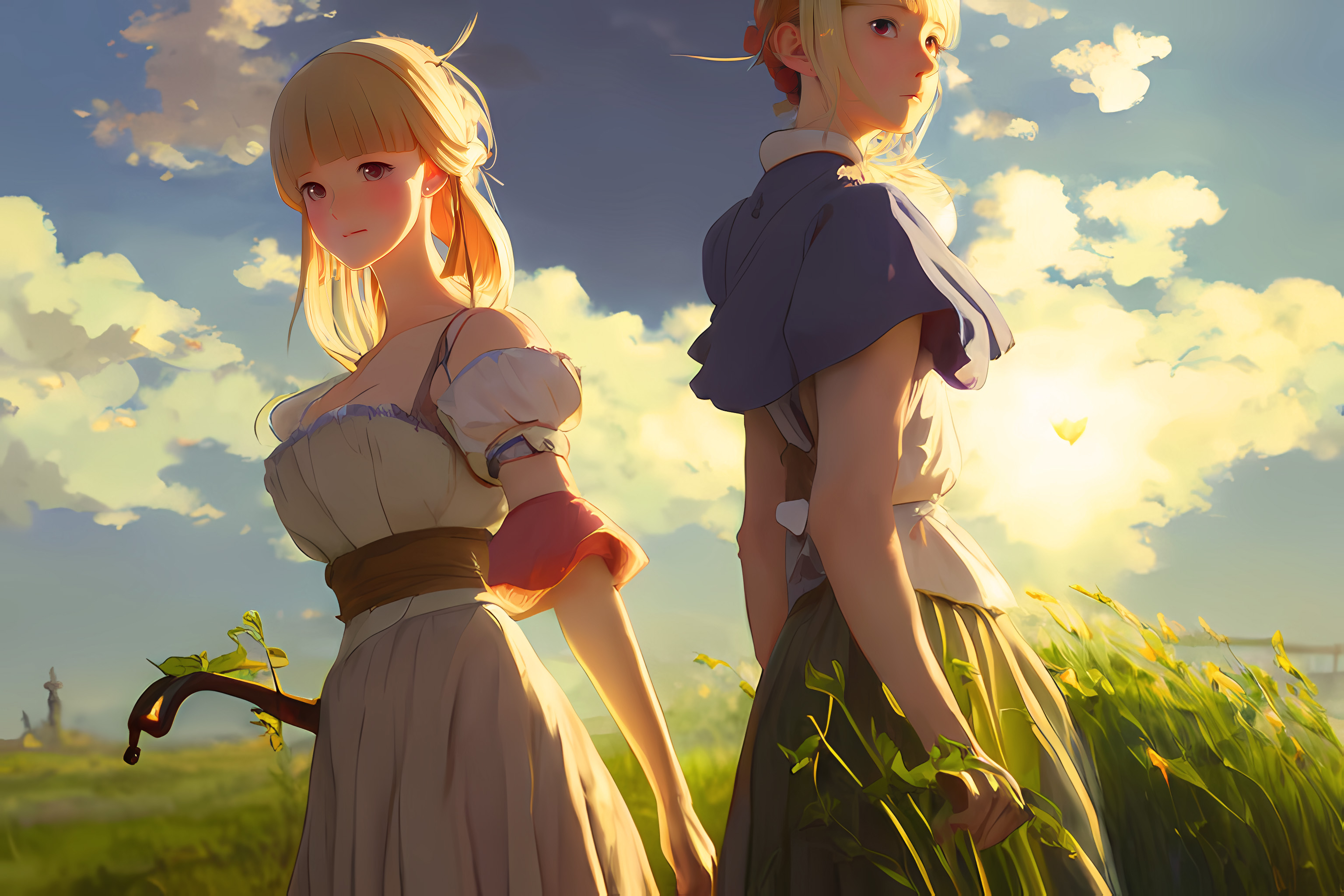 構図の中に2人入ってくると難易度があがる。顔の描きかたは細かく指定できるわけではないので、試行回数を増やしてなんとか違和感がないのを選ぶしかない。