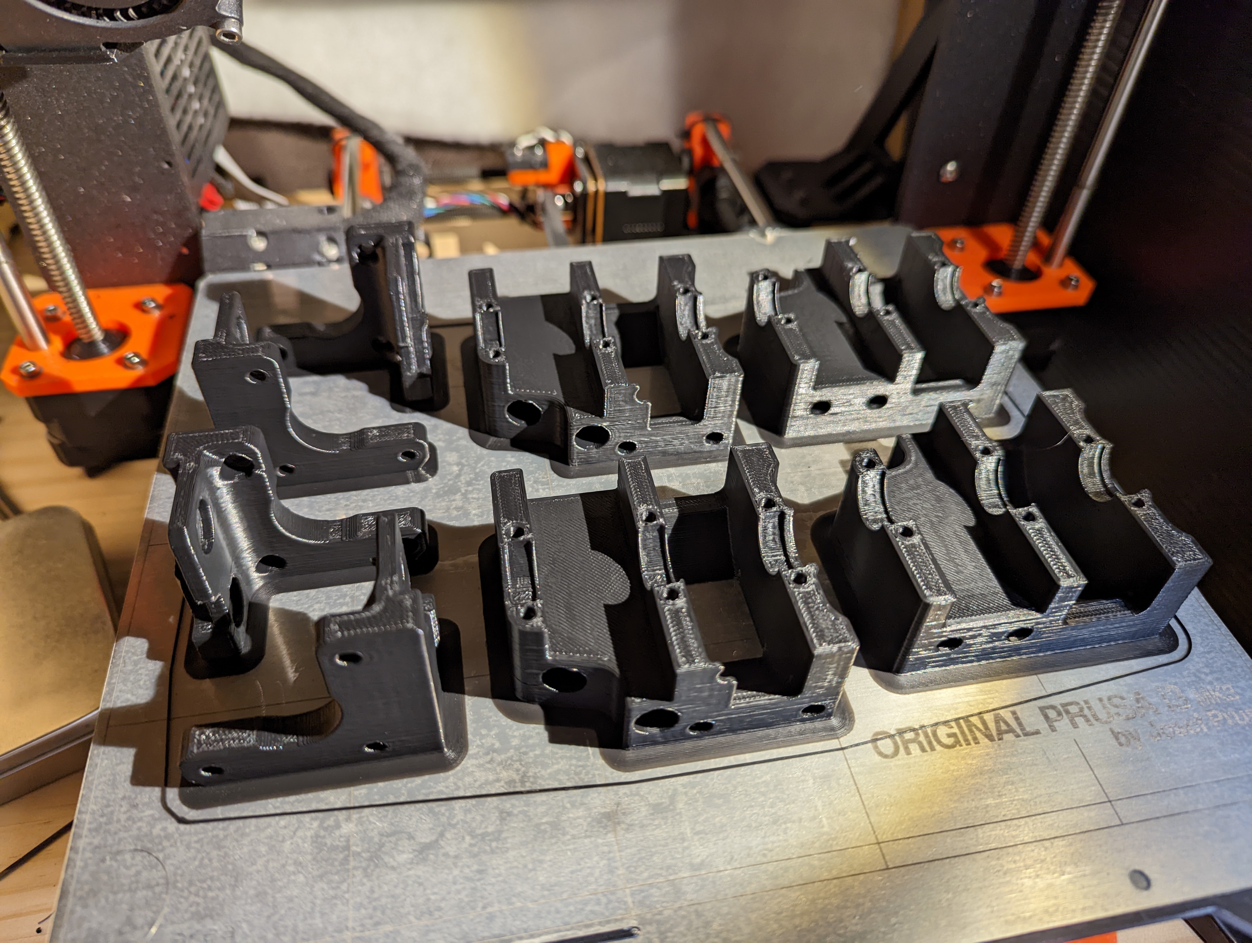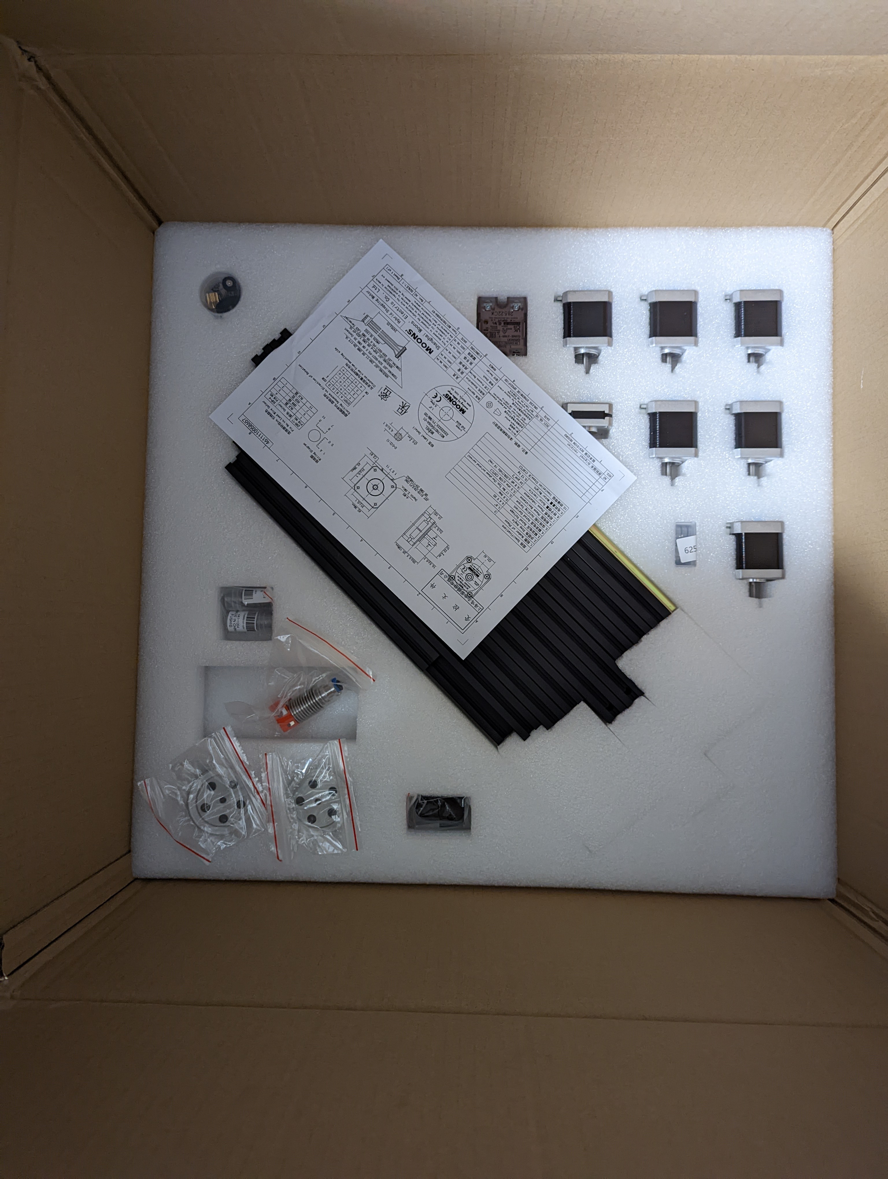 出力するパーツ数は結構多い (Prusa が 3D プリント部品を最小限にしているのと対照的)し、大きいものが多い。動作に必須な部品だけでも3~4日かかる。全部プリントするには一週間以上かかると思ったほうが良い。パーツを注文しても全部届くまで1ヶ月ぐらいかかるだろうからのんびりやって良い。