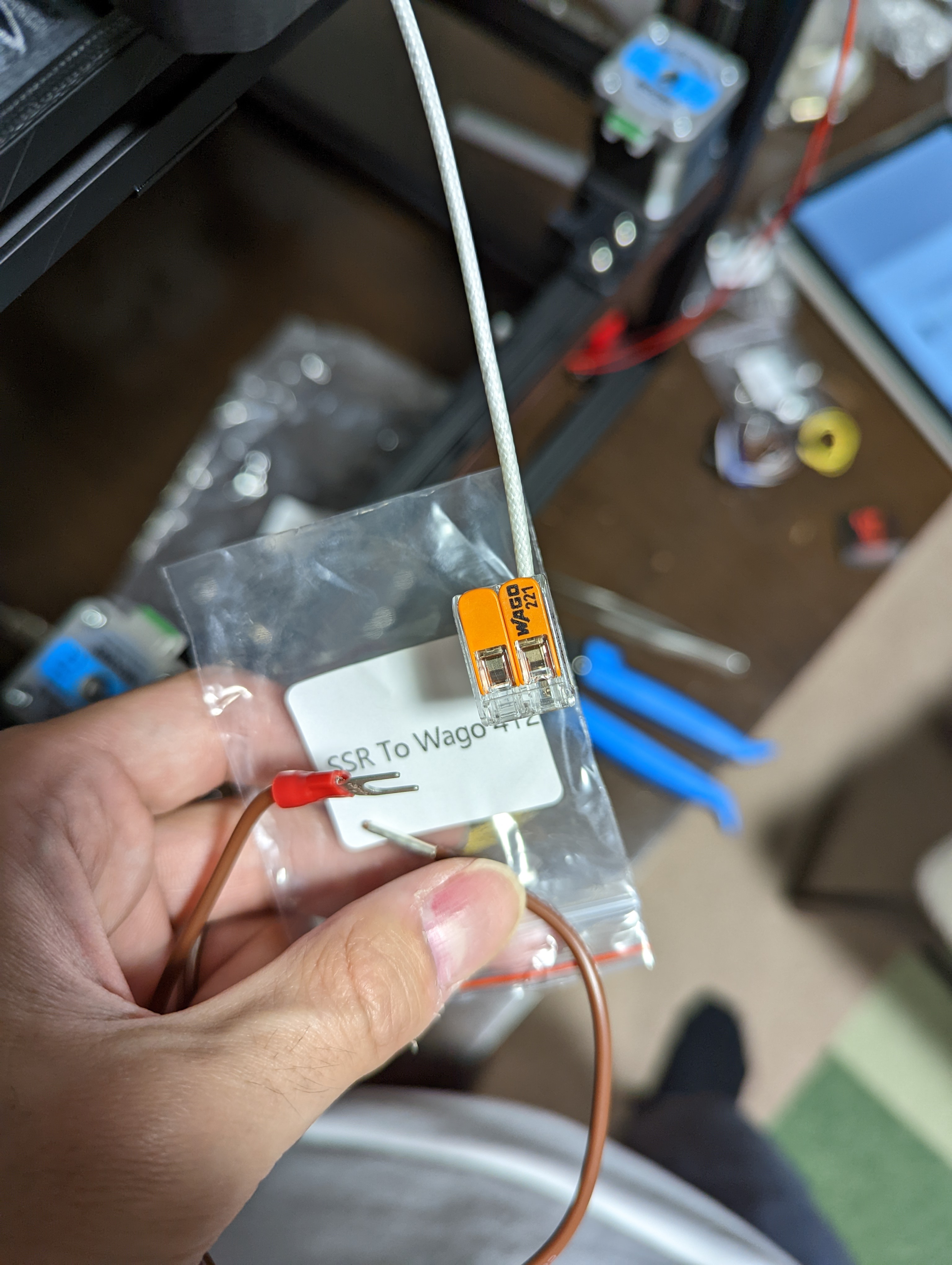 WAGO の接続端子が複数ついており、配線部分でははんだ付けをする必要がなかった (マニュアルの5端子WAGOコネクタに加えてヒーター接続用と思われるの2端子WAGOコネクタもついていた)。