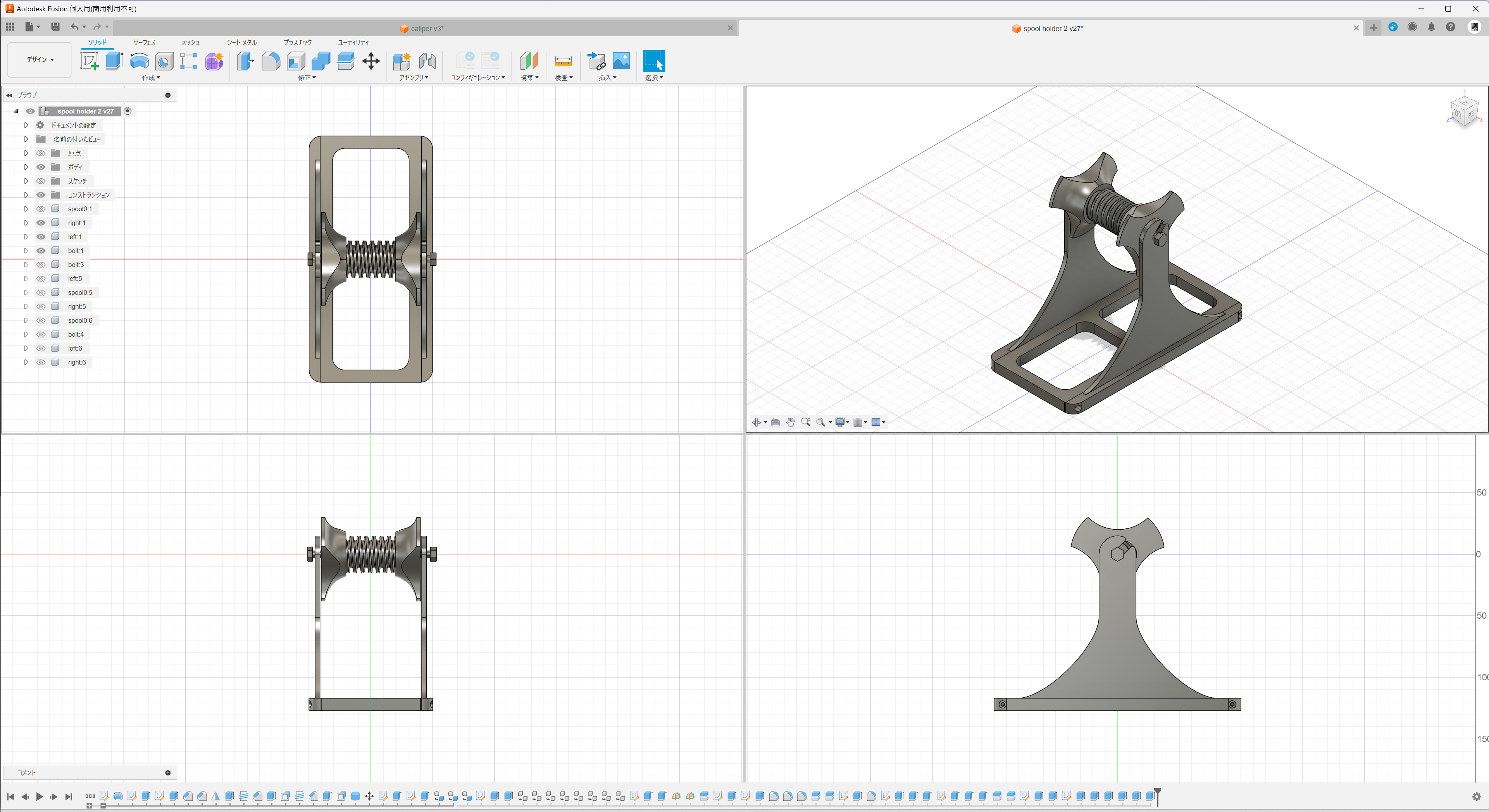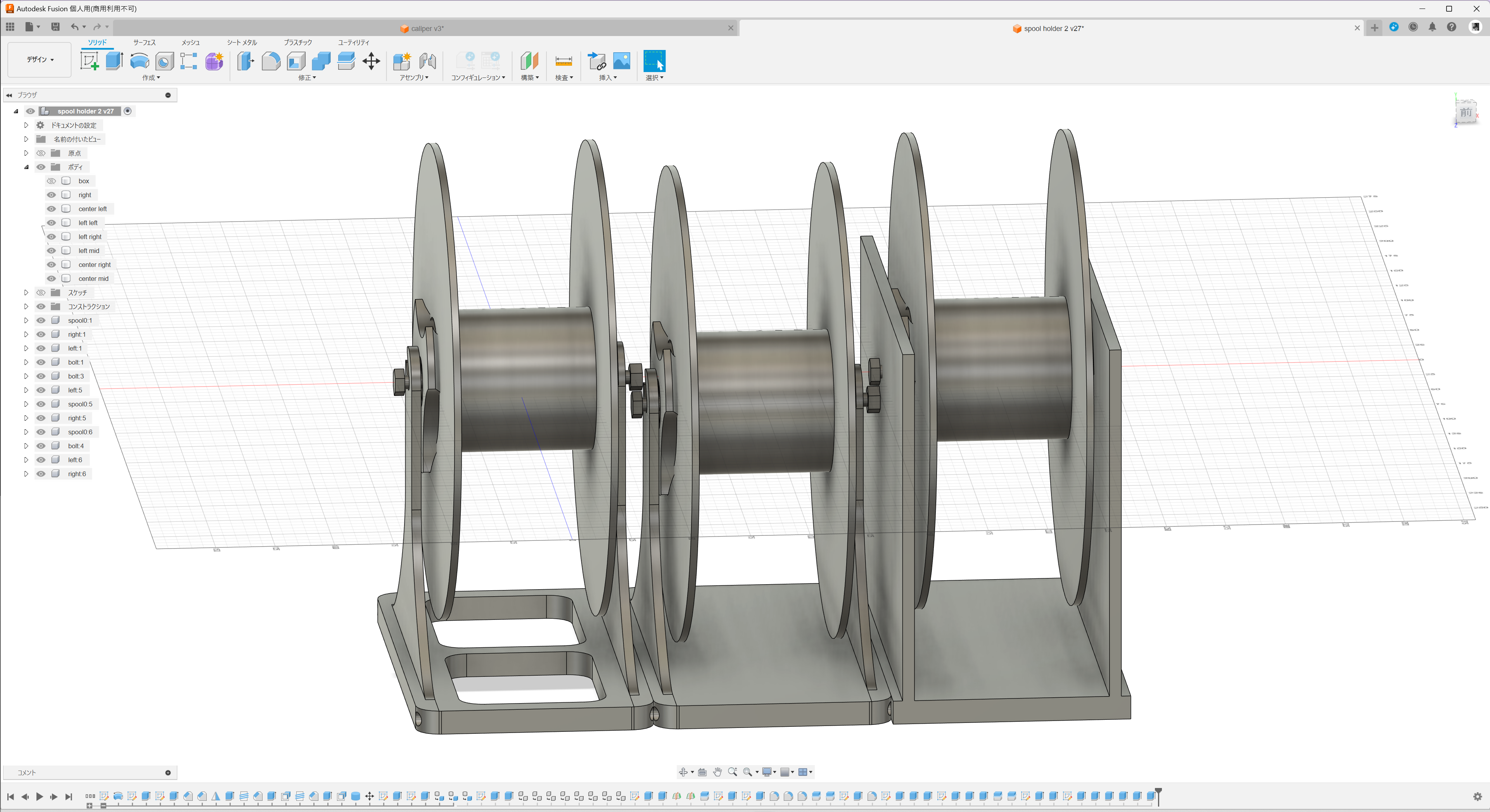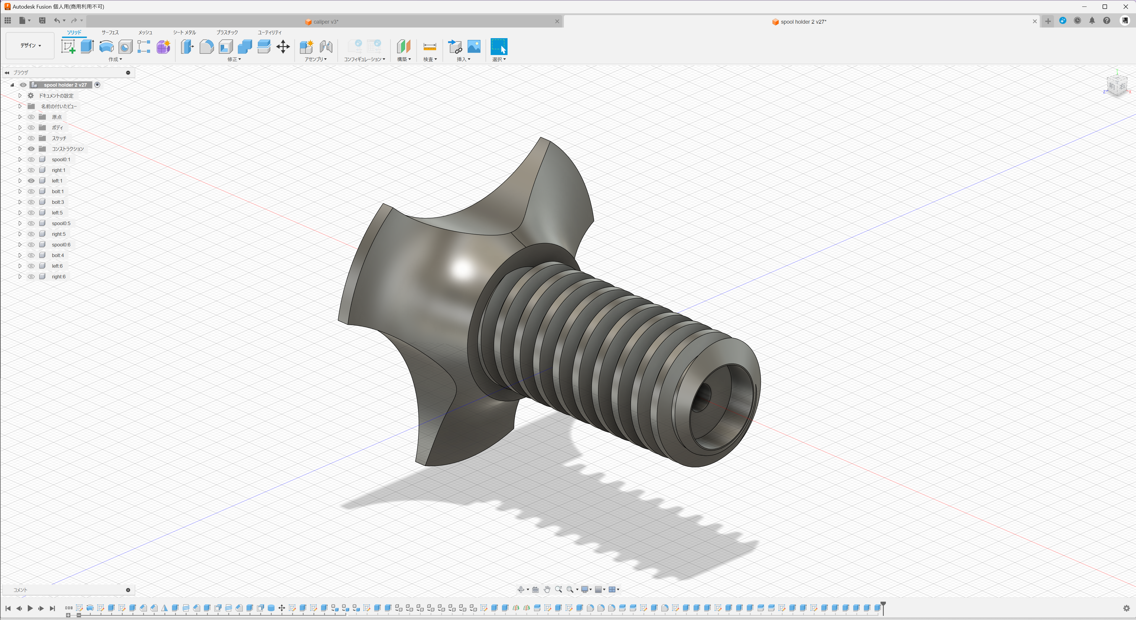 スプールを固定するボルトとナットを作り、そこに固定軸を貫通させるようにした。